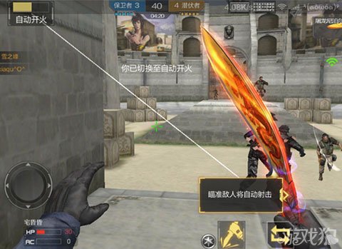 当然了,在穿越火线里面有个叫自动开火,如果对自己刀法不自信的小伙伴可以选择这个模式将敌人击杀。