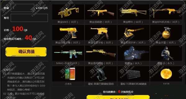 02. 通过本活动页面充值Q币,可以参加抽奖活动,100Q币抽1次,100%中奖