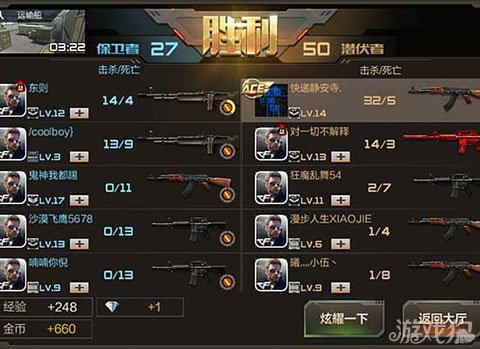 作为一款射击游戏不进行战斗怎么行呢?通过pvp竞技模式中的团队战、刀战、爆破战或休闲模式中的躲猫猫等无论哪种模式无论是输还是赢都能获得不菲的金币。