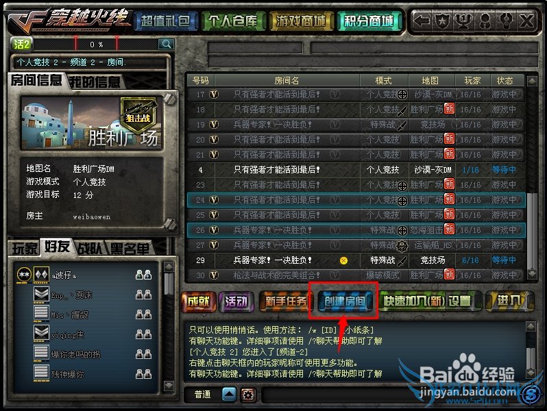 说下怎么在穿越火线里创建一个房间