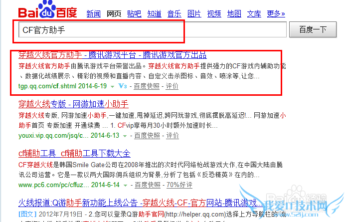 在浏览器中输入:CF官方助手,然后选择第一个进入;如图: