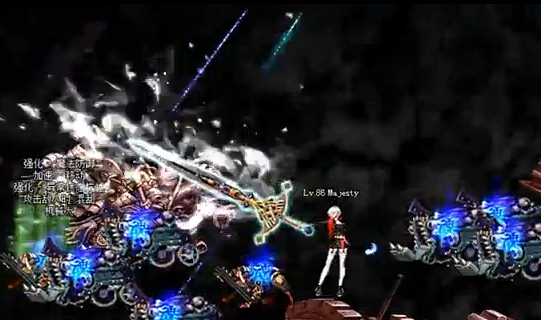 空绝剑:裂地,女王大人将手中的鞭子变为巨剑砸向地面形成冲击波,造成的伤害只有一段但是伤害非常高。释放该技能时可按住相应的方向键来提升释放距离,但最长距离也不会很远。最大的亮点在于超高的技能百分比系数,相同条件下能达到最高等级的空绝剑:裂地与剑宗二觉主动也就少一万的百分比系数。