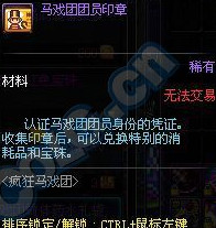 马戏团团员印章是马戏团活动副本中的普通兑换物品,玩家可在追猴子、躲避球和抓皮埃罗副本中获得,可兑换的物品如下。