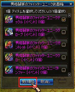 ファイッターユニーク武器+10強化券1個、SD男格闘家クリーチャー1個が獲得できます