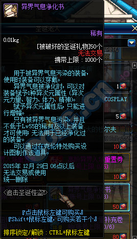 dnf异界气息净化书怎么得?2015dnf追击圣诞怪盗活动,异界气息净化书需要多少被破坏的圣诞礼物,需要这个净化书的玩家就来看下文吧。