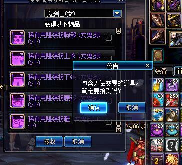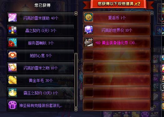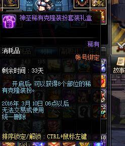 这就是人品啊,没想到我也有人品爆发的今天,DNF玩家5天满疲劳开十个盒子没想到居然一套克隆,不直接上图了!