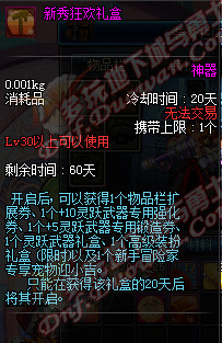 新秀狂欢礼盒则是玩家在获得该礼盒后20天方能打开,所以玩家注意在获得欢迎礼盒后要立即打开才能节省时间。