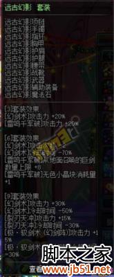 装备选择也是十分的简单。直接走远古三-远古幻影9。空出单件比较推荐魔战胸,减CD和黄字并存,很是强大。也可以搭配属强石头或者魂链,以及黄字上衣爆伤裤子等等强散类装备。必须一提并且吐槽的是,国服的临时工强大的翻译能力。九件套的属性并非图片里面的属性,正确的属性为:雷鸣千军破巨剑生成范围-10%,雷鸣千军破冲击波攻击力+10%,幻剑术斩击次数+2,幻剑术 cd-50%,雷鸣千军破 cd-30%,雷鸣千军破-巨剑生成范围-30%。所以纵观整套远古幻影套,要玩钝最好还是走九件套。九件对于幻剑术和雷鸣千军破的提升是十分巨大的。持续输出靠幻剑术,强烈的震波还能够软控一些非霸体的怪物。而爆发依靠雷鸣千军破,瞬间爆炸完成单杀。二觉之后有多了飓风魔剑等技能,爆发更足了,令钝宗除了在舰炮,在其他安徒恩地图也能有一席之地。