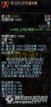 又是一个叼炸天的属性,65的双攻,90的独立,又有10%移动速度的加成,只可惜会进入诅咒状态,减少44的四维,其实减的这点属性这些都不是事儿啦。