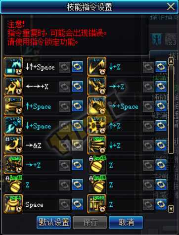 指令设置指南:分天上一套,地上一套,指令设置一律先设置地上技能,为了方便,技能指令在设置的时候,正常不使用C和X,统用Z和空格。