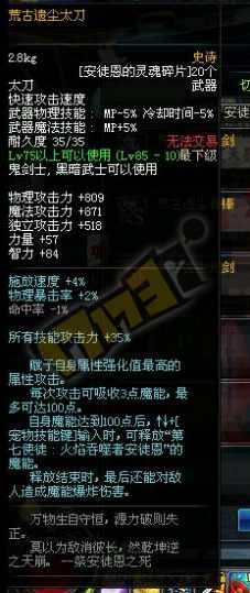 首先荒古武器是无争议的第一武器,特点就是无冲突,不需要考虑装备的取舍,就好比楼主用的无影却给了我暴击戒子无比的想要荒古,现版本人人梦想的毕业武器