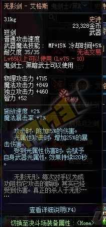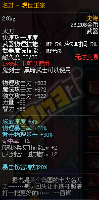 然后登场的是比较具有特殊性的武器,我称之为准一档,并不是因为伤害不如一档的原因,上榜的都具有其局限性,分别是天下第一刀——魂殇,无锋,邪目。
