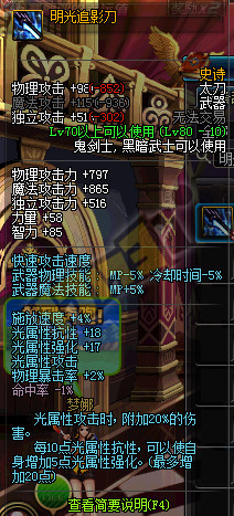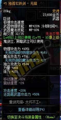 缺点:目前版本情况下属强越来越好堆导致武器的属强加成率没有想象的高,需要手搓(听说手搓宠物键以后要改版了),现在的dnf很难找到基友