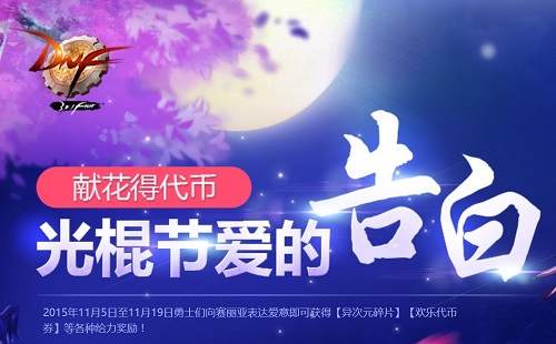 DNF新的光棍节的告白活动玫瑰花瓣兑换玫瑰花向赛丽亚表白获得宝箱奖励