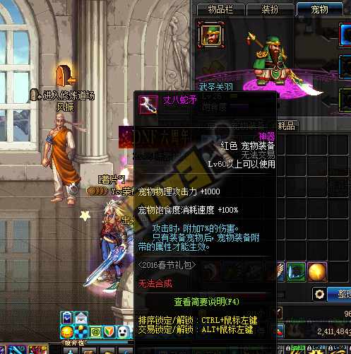这样只带一个关羽就有了一层宠物白字。看我去怒炸虫子四十个血爆