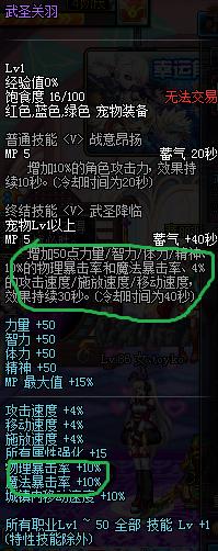 宠物的效果是,自带10的双暴击,释放终极技能后,再增加10双暴击,50的四维。按道理效果同时触发后,应该可以很变态的增加40的双暴击。但是,实际效果并非如此。