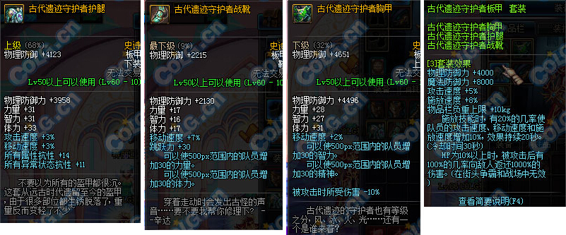 这样,所有防具就测试完结咯~这次的四套都是有一点特效,但是实际上己经完全没蛋用的套装了,就算放在当年也基本是玩具。
