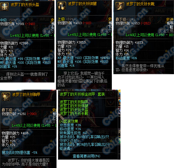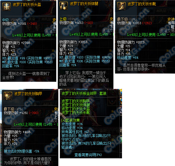 这套更是完全没有什么属性....估计以前的话,这套加的技能还是可以说有点用,不过就算到了70级之后这套都不行了....经过别人的提示,我发现这一套老版加了超多技能,现在的版本竟然只剩这么一点技能了.....我去你特么在逗我么!!!!
