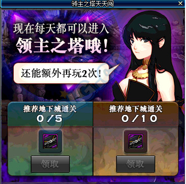 玩家在活动期间每天登录角色可获得一张领主的邀请函门票,在刷推荐地下城达到5次和10次的时候分别能再获得一张门票,每天最多可刷3次。