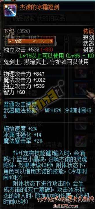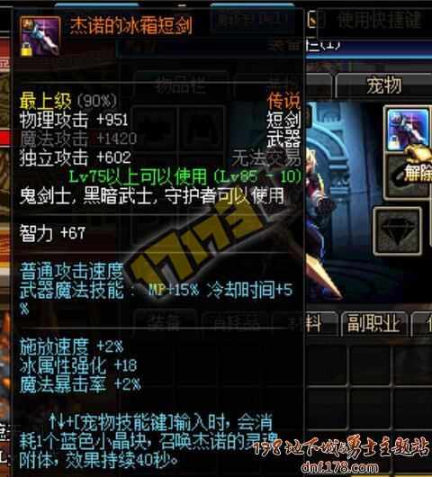 DNF玩家买了五套年套,送的罐子,本想开把无影结果给了这货色,试玩了一下,好屌,全程墓碑,屌炸天,测试了一下伤害,还是比较客观的(固定伤害,带不带装备伤害相差不大,偶尔出暴击,没有冰冻等级,但有些怪也冻不住,单次攻击会掉落三个墓碑,价格比较平民化,4000万左右,特效战士可以考虑,外观可能有点丑,具体伤害可以戳图看看,一图没带装备,三图是带了装备的。)