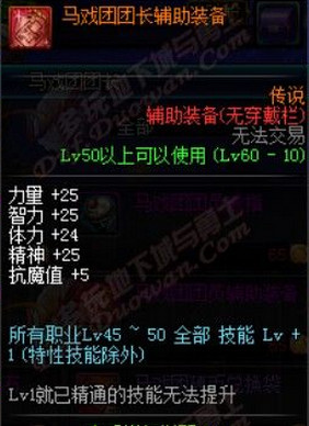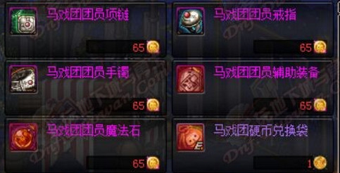 马戏团团员辅助装备需要65个马戏团金币兑换,也可在疯狂马戏团中BOSS掉落。