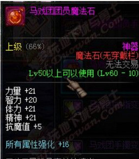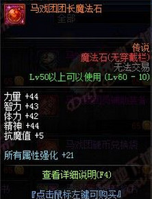 马戏团团员魔法石需要65个马戏团金币兑换,也可在疯狂马戏团中BOSS掉落。