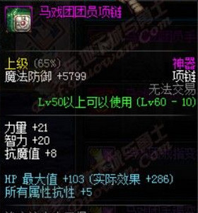 马戏团团员项链需要65个马戏团金币兑换,也可在疯狂马戏团中BOSS掉落。