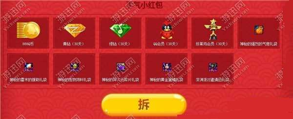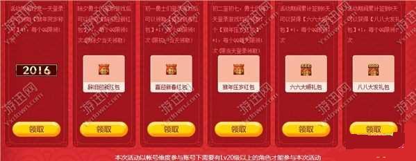 活动期间,Lv20及以上的角色登录游戏后可以获得手气小红包一个,每天可领1个!开启手气红包可以获得如下奖励的一种:
