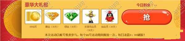 活动期间,Lv20及以上的角色登录游戏后可以获得抢豪华大红包资格一次,每日限量888份!开启豪华大红包后可以随机获得以下奖励中的1种!