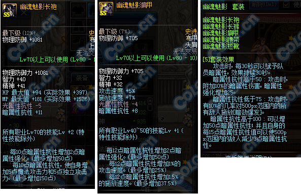 每10点暗抗增加2点暗强和5点魔攻和五点独立,所有职业70级技能+2(即只加70EX技能)