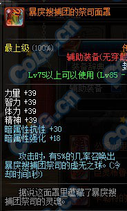 3.技能加成一般,但是也还可以了,暗抗在散件上带来的其它属性也很好,套装自带暗武器也能让玩家免去找暗属性攻击的苦