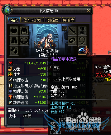 人物面板物理攻击=武器物理攻击力+武器物理攻击力X力量X0.004+无视防御的物理攻击。人物面板魔法攻击=武器魔法攻击力+武器魔法攻击力X智力X0.004+无视防御的魔法攻击。如果有武器精通,则变为人物面板攻击=[武器攻击力+武器攻击力X(力量/智力)... >>详细