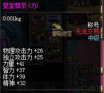 称号上有力量属性和物攻属性。