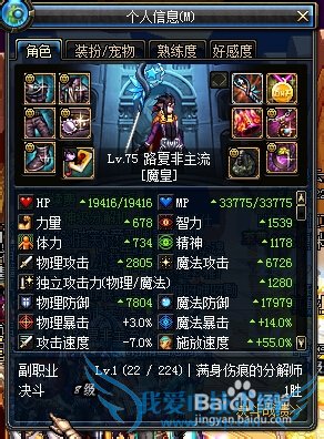 于魔法系攻击。想要提高攻击力首先就要提高智力。以75级魔皇为例。