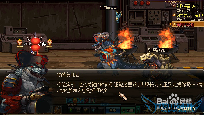 通关任务地图【铁鳞海贼船】,和BOSS啰嗦的雄人鱼对话。
