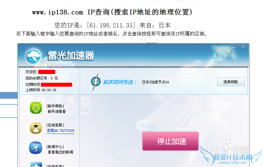4.加速成功,打开百度看看IP地址是不是显示在日本!