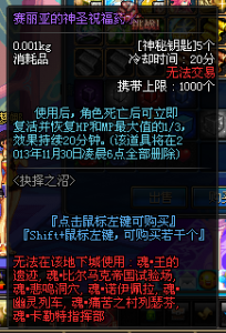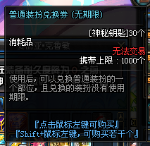 可以从赛利亚姐姐哪里的物品店里换东西45个神秘钥匙可以换普通装备兑换卷无限期8个可以换赛利亚的神圣祝福药水3个可以换神灵的庇佑 >>详细