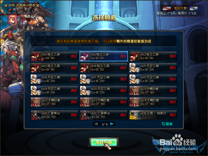 然后选择相应的频道,然后点击游戏开始,如下图。