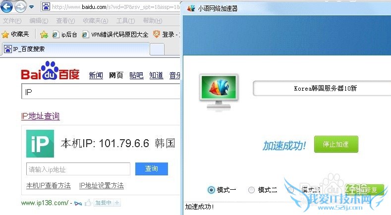 启动加速,连接成功,打开百度查下本地IP是否显示为韩国!