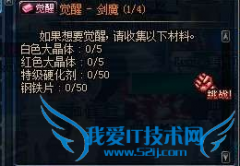 操作详解首先去行会找转职师接初次觉醒任务,觉醒任务1白色大晶体红色大晶体特级硬化剂和钢铁片觉醒任务二、来到亡者峡谷进入死亡之塔通关30层即可觉醒任务三。需要1...