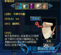 每天登录游戏,或者同感2次推荐地下城可以获得1此翻盘机会,如果翻出的卡牌的2张卡牌为相同图案,则可以获得卡牌点数,20级以下角色无法参加活动介绍的玩法是通过通...