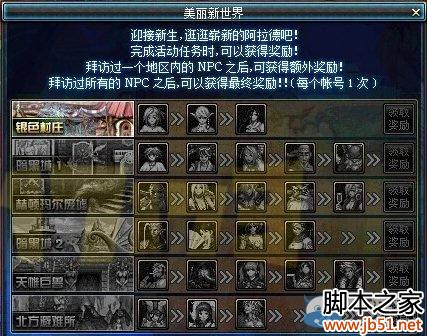 拜访过一个地区内的NPC之后,可获得额外奖励!拜访过所有的NPC之后,可以获得最终奖励!!(每个账号1次)