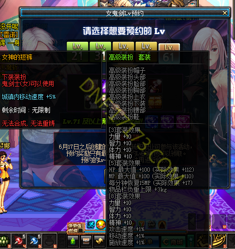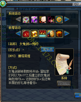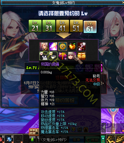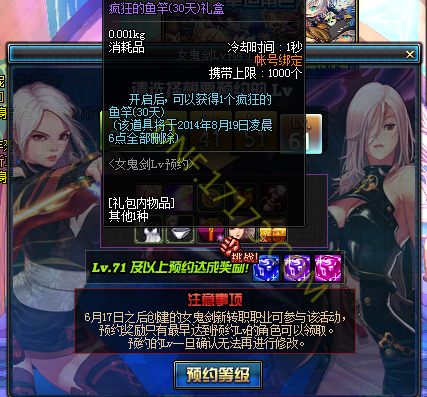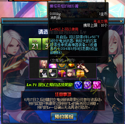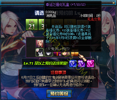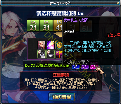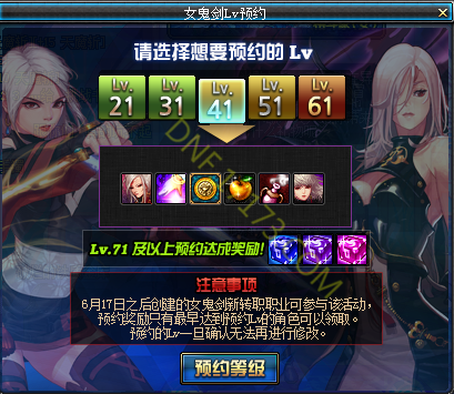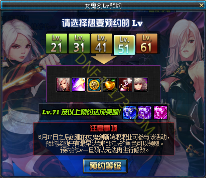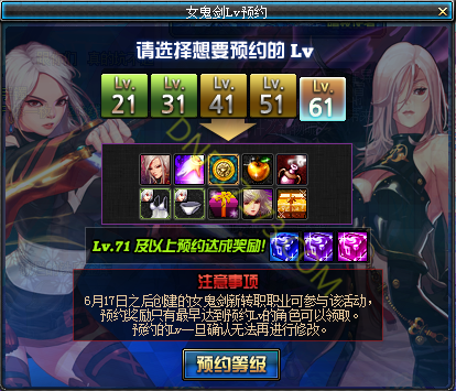 活动名称:女鬼剑Lv预约
