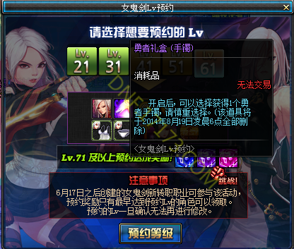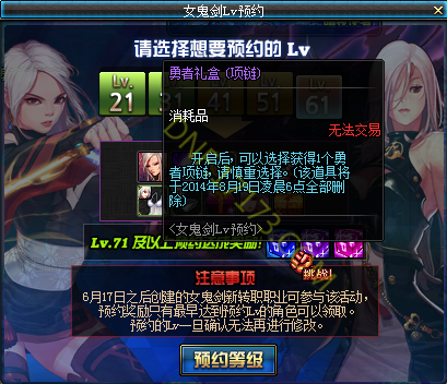 DNF女鬼剑新职业等级预约活动介绍