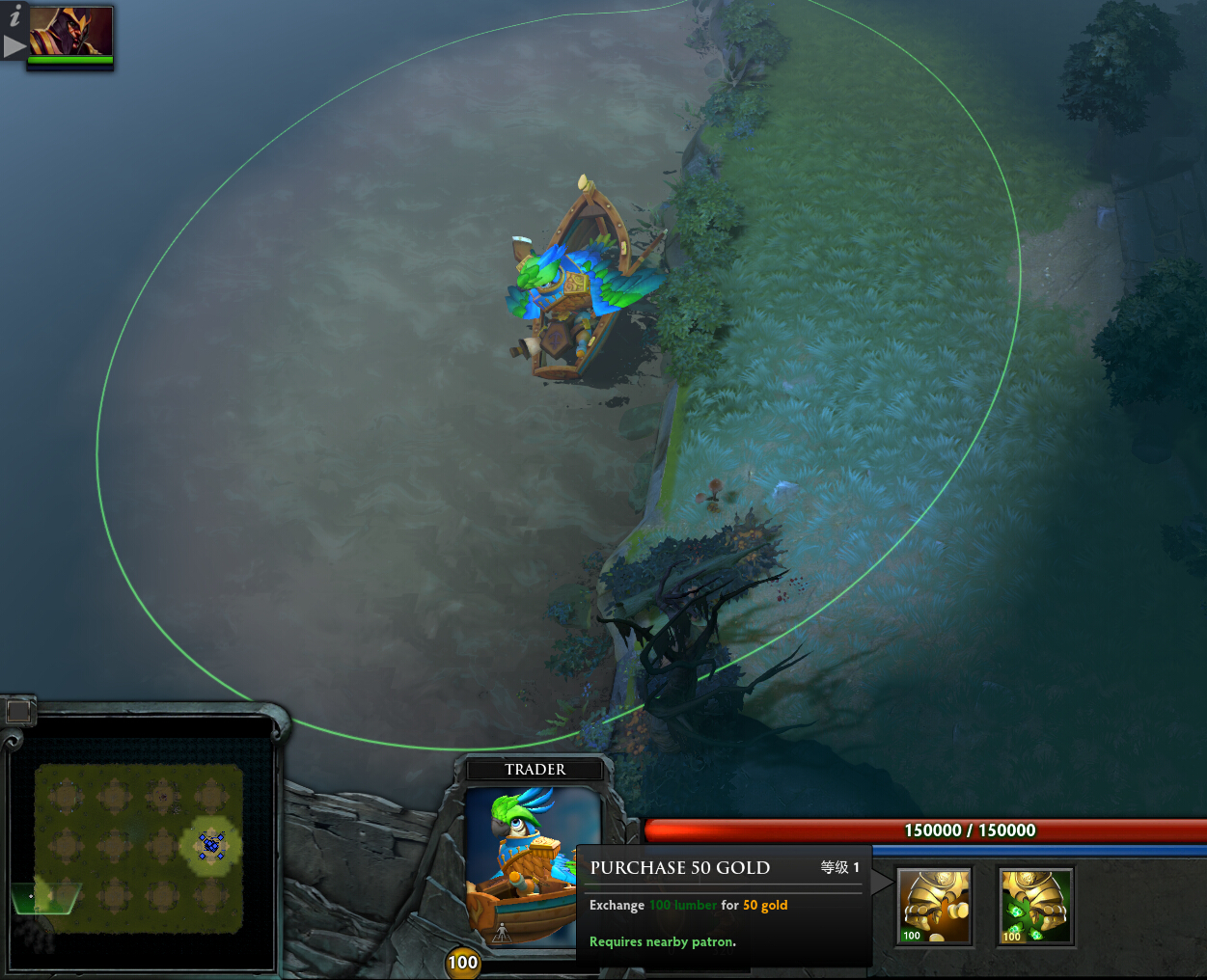 玩家的金币和木头会随着时间增加。通过击杀敌方小兵单位也能增加固定的金币。此外,还能与游走在地图边缘的鹦鹉船进行交易。