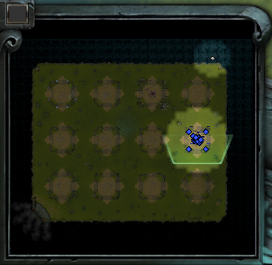 如图,区域内共由12个小高台,并有高地视野。每个玩家都将出生在一个随机的高台之上。