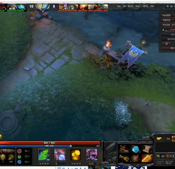 7分半的时候,小编犯二在没大的时候上了对面的一塔前补刀,被蓝猫+巫医合力击杀,在死前买出了辉耀卷轴。这波节奏被断的非常伤,1 3对点的炼金,可以说对边路队友毫无支援,只能选择极速发育,因此尽量要避免前期的死亡。