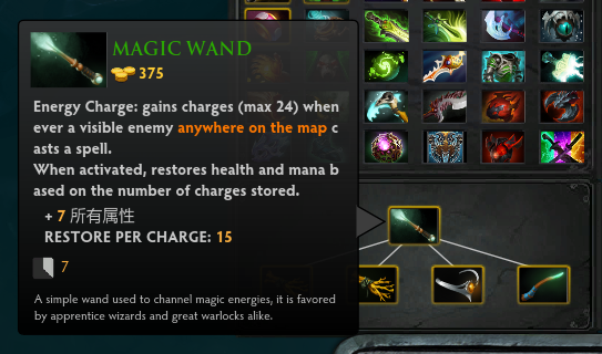 首先是最实用的物品魔棒,它不光得到了属性加成,充能距离还扩展到了全图。出门买一个准备准没错。