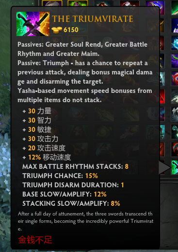 这是一把力法智三系的配件,参照夜叉和散华的合成方式,游戏内任意2个属性都能合出对剑。也许是对它外表和实用性的爱好,反正我每盘都出的。