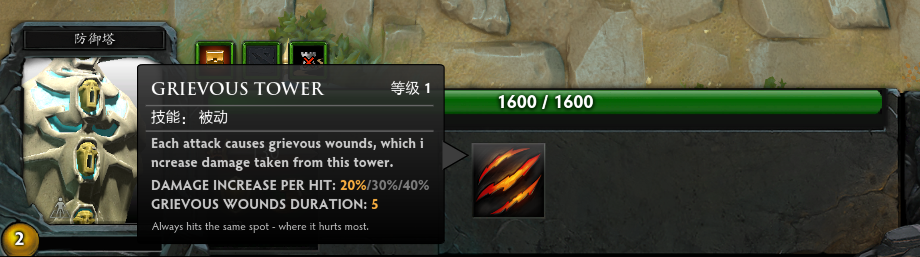 时代在进步,我们的防御塔当然也会进步的啦。在IMBA模式中,防御塔也有技能啦,不过我想大家一看这图标都能看懂,40%/70%/100%的概率眩晕0.6秒。